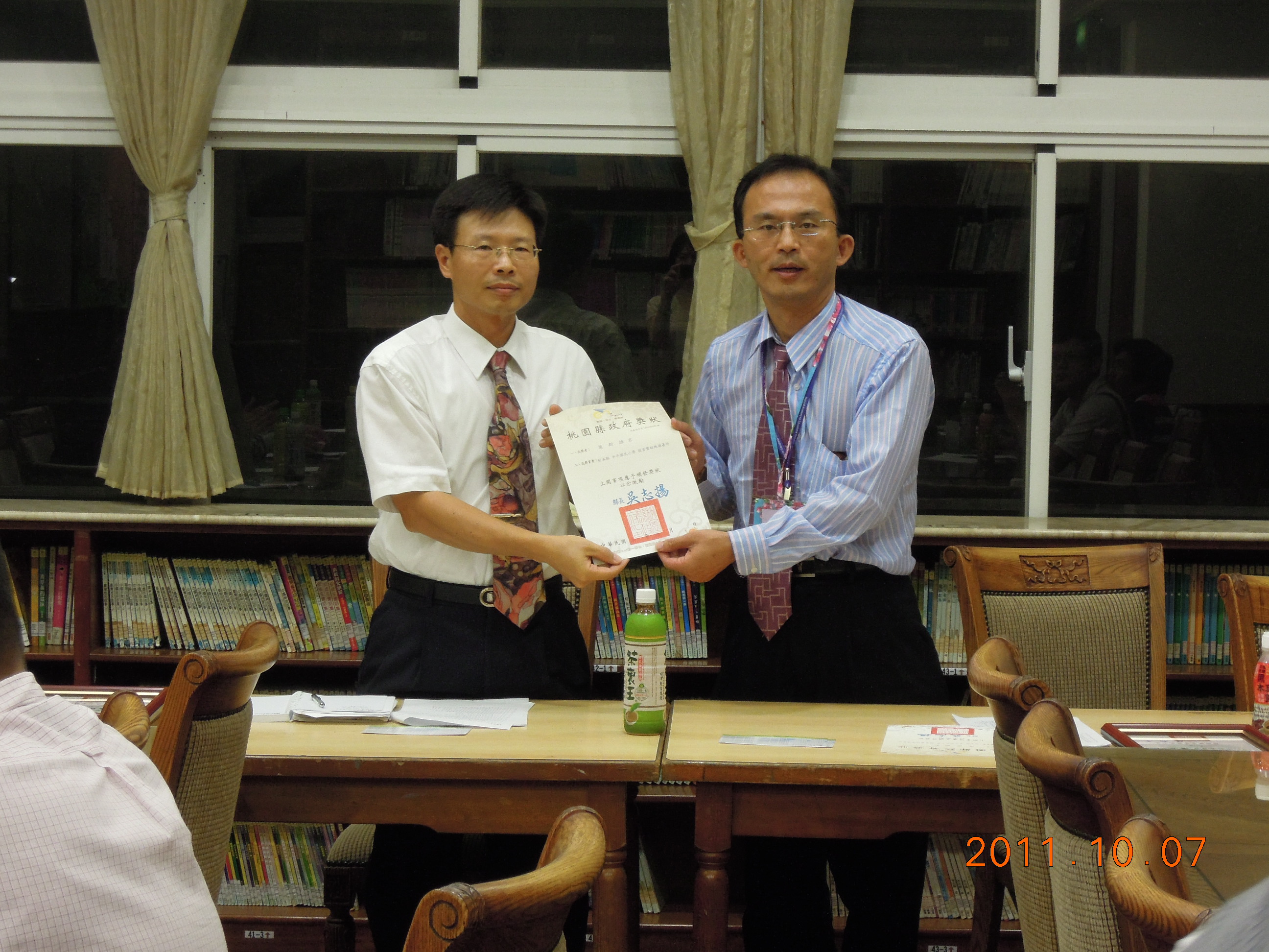 頒發捐資興學縣府獎狀